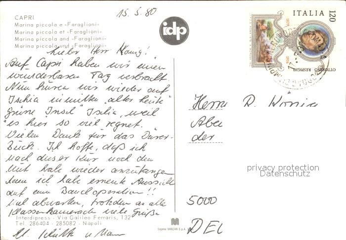 old postcard Capri Faraglioni postalisch gelaufen Erhaltung siehe scans