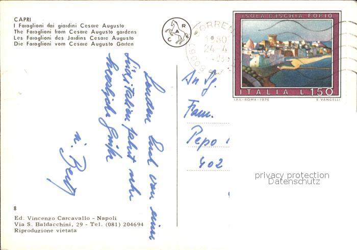 old postcard Capri Faraglioni dai giardini Cesare Augusta postalisch gelaufen Erhaltung siehe scans