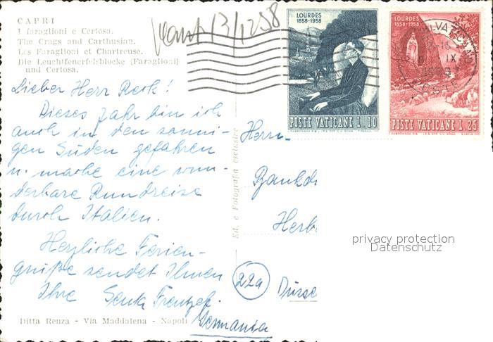 old postcard Capri Felsenpartie postalisch gelaufen Erhaltung siehe scans