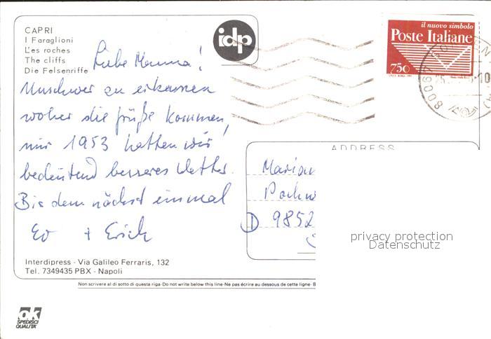 old postcard Capri Felsenriffe postalisch gelaufen Erhaltung siehe scans