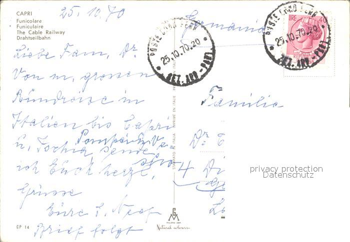 old postcard Capri Funicolare Zahnradbahn postalisch gelaufen Erhaltung siehe scans