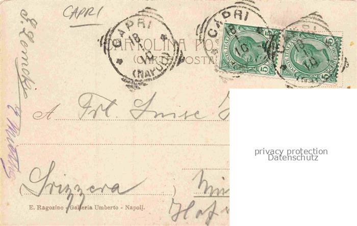 74034811 old postcard CAPRI Golfo di Napoli Campania IT Strada Hohenzollern e palma Dell Hotel Pagnano postalisch gelaufen Erhaltung siehe scans [WerneD78] KatCode: 11240