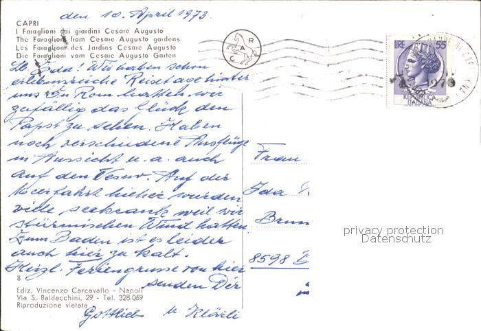 old postcard Capri I Faraglioni dai giardini Cesare Augusto postalisch gelaufen Erhaltung siehe scans