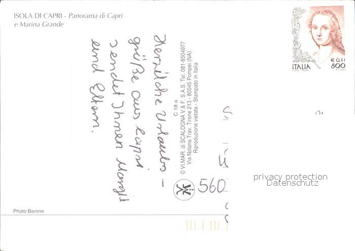 old postcard Capri Isola Panorama Marina Grande Hafen postalisch gelaufen Erhaltung siehe scans