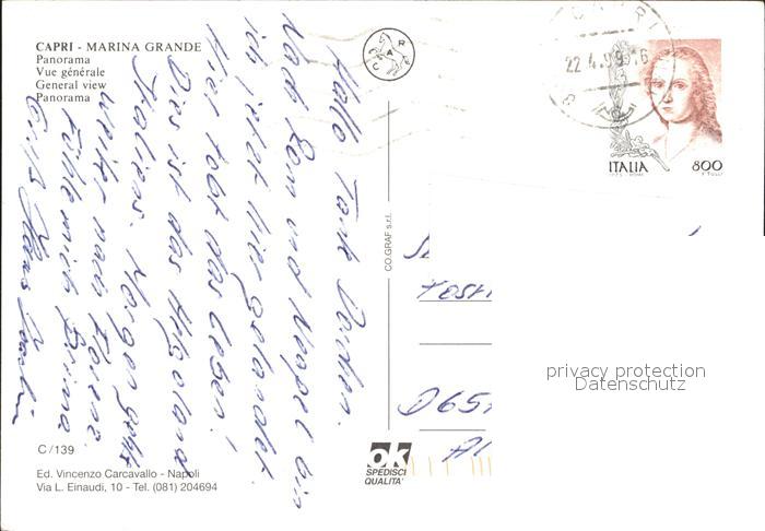 old postcard Capri Marina Grande Panorama Meer Schiffsanlegestelle postalisch gelaufen Erhaltung siehe scans