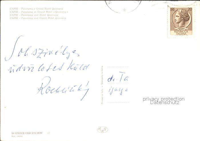 old postcard Capri Panorama e Grand Hotel Quisisana postalisch gelaufen Erhaltung siehe scans