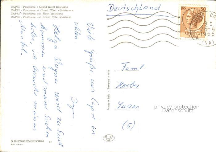 old postcard Capri Panorama e Grand Hotel Quisisana postalisch gelaufen Erhaltung siehe scans