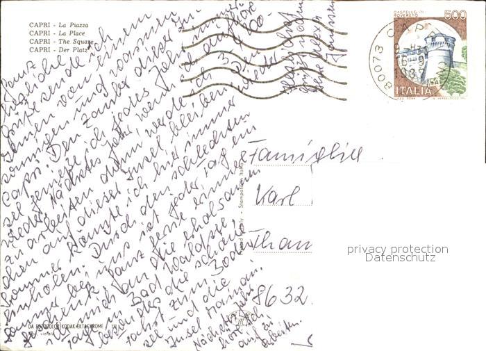 old postcard Capri Piazza Platz Strassencafes postalisch gelaufen Erhaltung siehe scans