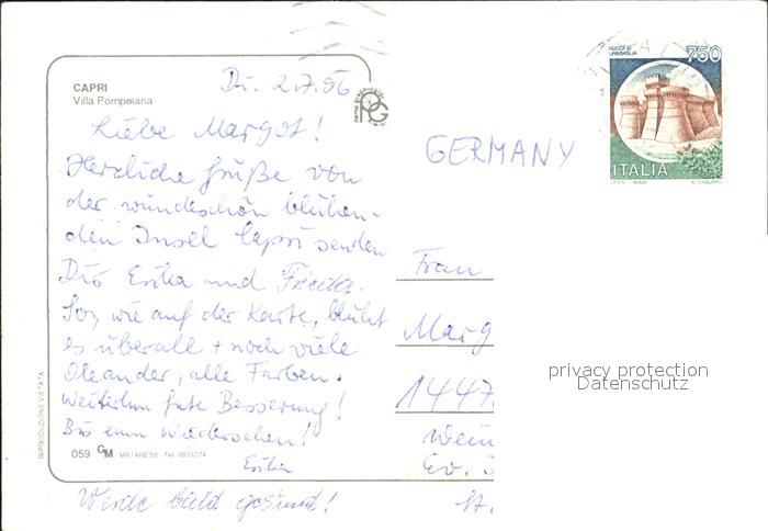old postcard Capri Villa Pompeiana postalisch gelaufen Erhaltung siehe scans