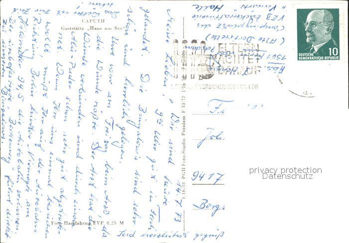 72395730 alte Postkarte Caputh Ferch Gaststaette Haus am See postalisch gelaufen Erhaltung siehe scans KatCode: 11110012069590