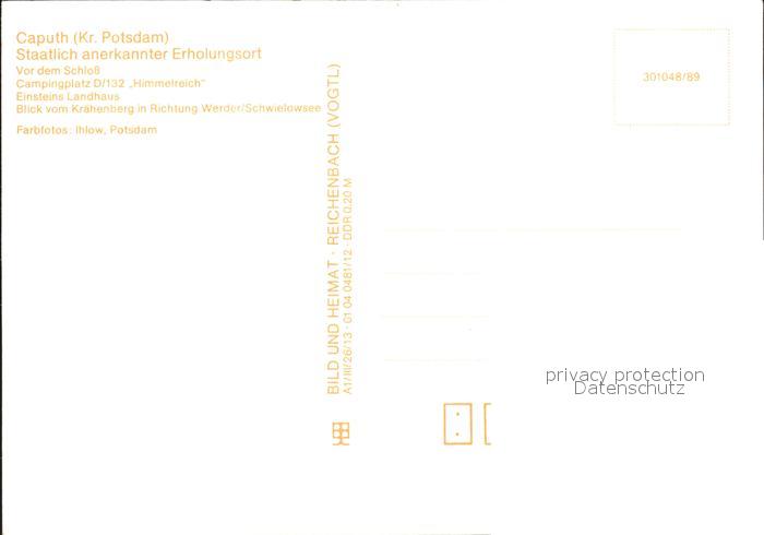 72111021 Caputh Schloss Campingplatz Einsteins Landhaus Blick vom Kraehenfels postalisch nicht gelaufen Erhaltung siehe scans KatCode: 11110012069590