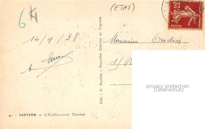 13547188 carte postale Capvern Etablissement Thermal postalisch gelaufen Erhaltung siehe scans [WerneD78] KatCode: 11170065265127