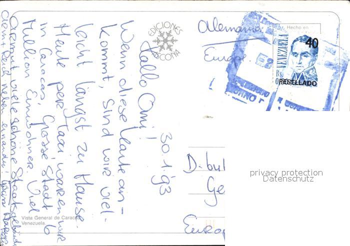 alte Postkarte Caracas Fliegeraufnahme Skyline postalisch gelaufen Erhaltung siehe scans