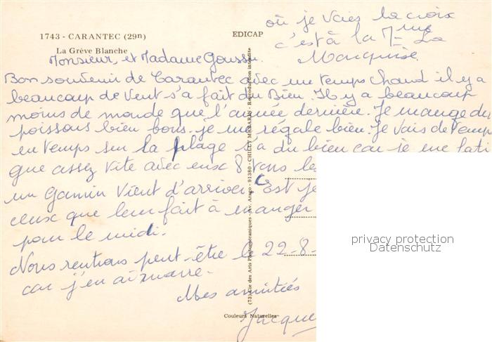 13797759 Carantec 29 Finistere La Greve Blanche postalisch nicht gelaufen Erhaltung siehe scans [WerneD78] Wern Katcode 11170029329023