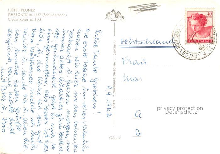 13604900 Carbonin Schluderbach Hotel Ploner postalisch gelaufen Erhaltung siehe scans [WerneD78] old postcard Wern Katcode 11240