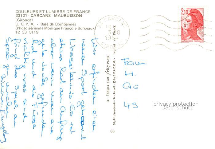 13835801 Carcans-Maubuisson 33 Vue aerienne Base de Bombannes postalisch gelaufen Erhaltung siehe scans [WerneD78] carte postale Wern Katcode 11170033433097