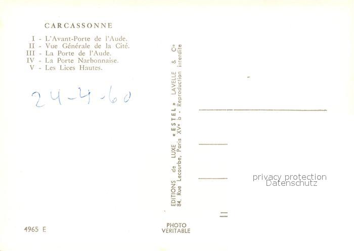 13162507 Carcassonne Avant Porte de l’Aude Vue generale de la Cite La Porte Narbonnaise Les Lices Hautes KatCode 11170011111069