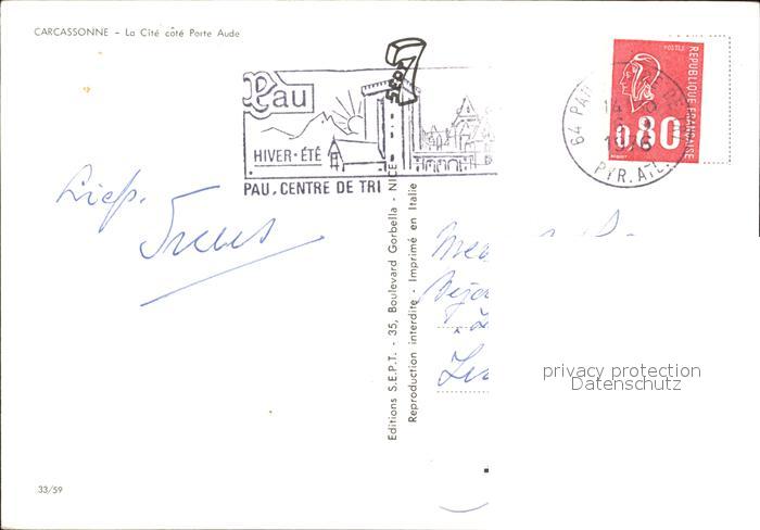 12459027 carte postale Carcassonne Cite Porte Aude postalisch gelaufen Erhaltung siehe scans KatCode: 11170011111069