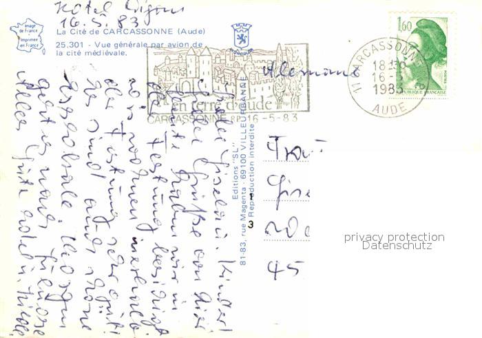 12916562 carte postale Carcassonne Fliegeraufnahme postalisch gelaufen Erhaltung siehe scans [NatalD47] KatCode: 11170011111069
