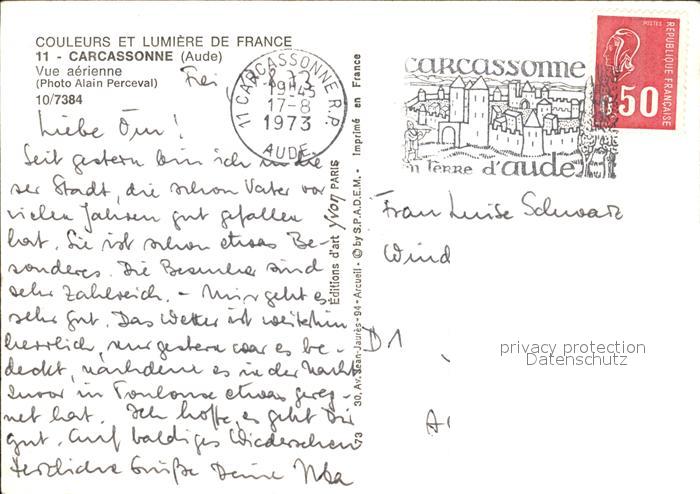 12458367 carte postale Carcassonne Fliegeraufnahme postalisch gelaufen Erhaltung siehe scans KatCode: 11170011111069