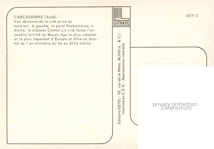 13241922 Carcassonne Fliegeraufnahme postalisch nicht gelaufen Erhaltung siehe scans [KathaD81] KatCode: 11170011111069