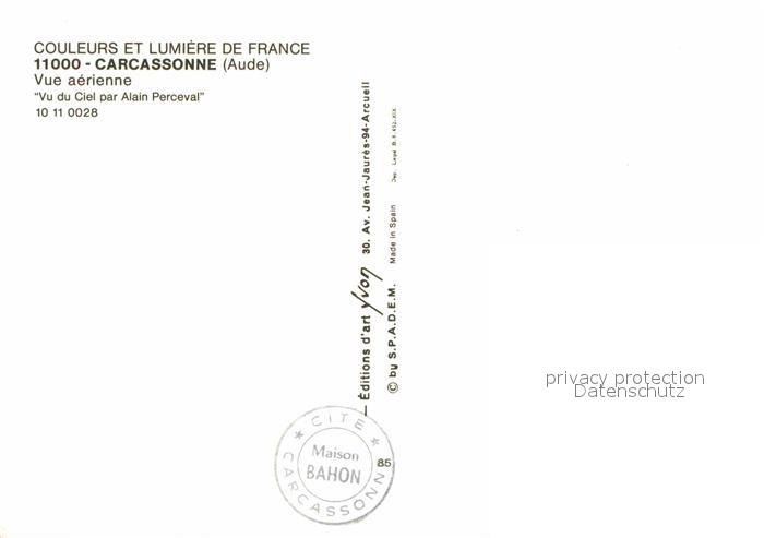 12815315 Carcassonne Fliegeraufnahme Vu du Ciel par Alain Perceval postalisch nicht gelaufen Erhaltung siehe scans [NatalD47] KatCode: 11170011111069