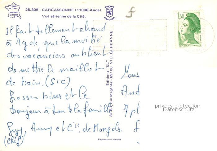 13328716 carte postale Carcassonne Fliegeraufnahme postalisch gelaufen Erhaltung siehe scans [KathaD81] KatCode: 11170011111069