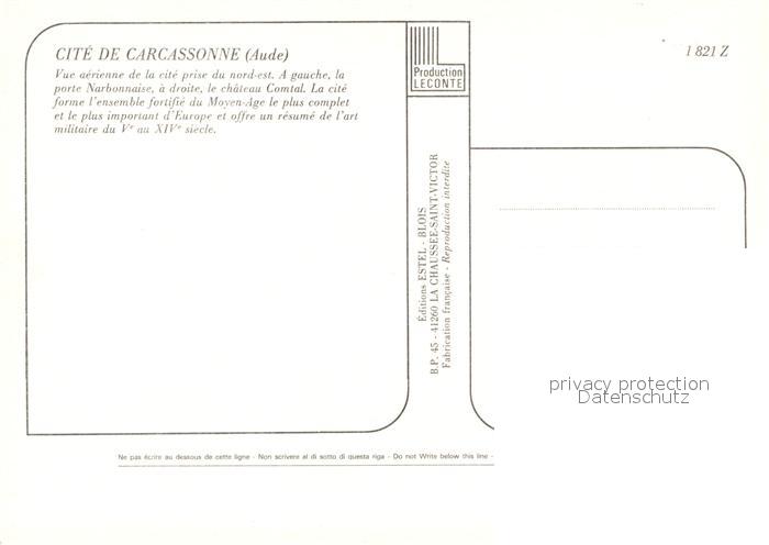 13241133 Carcassonne Vue aérienne de la cité postalisch nicht gelaufen Erhaltung siehe scans [FriedD77] KatCode: 11170011111069