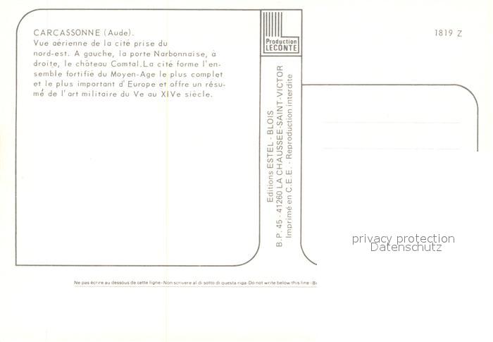 13363370 Carcassonne Vue aérienne de la cité Port Narbonnaise Chateau Comtal postalisch nicht gelaufen Erhaltung siehe scans [FriedD77] KatCode: 11170011111069
