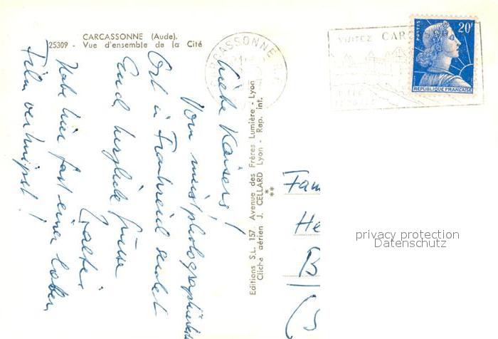 13164314 carte postale Carcassonne Vue aerienne d’ensemble de la Cite postalisch gelaufen Erhaltung siehe scans [WerneD78] KatCode: 11170011111069