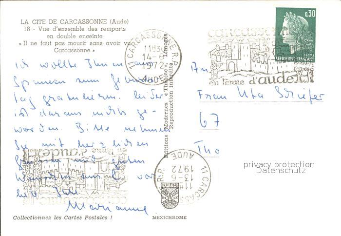 12457348 carte postale Carcassonne Vue d ensemble des remparts de la Cite vue aerienne postalisch gelaufen Erhaltung siehe scans KatCode: 11170011111069
