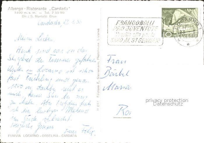 11652837 alte Postkarte Cardada Albergo Ristorante Cardada postalisch gelaufen Erhaltung siehe scans KatCode: 11470210655962