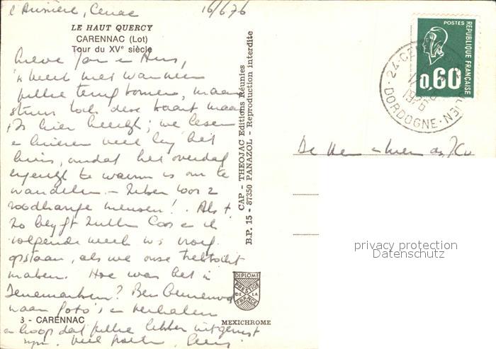 12615020 carte postale Carennac Tour du XV siecle postalisch gelaufen Erhaltung siehe scans [NatalD47] KatCode: 11170046346058