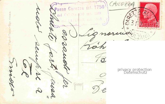 74122107 old postcard Carezza Catinaccio Karersee BOLZANO Trentino IT Passo di Carezza Gebirgspass Dolomiten postalisch gelaufen Erhaltung siehe scans [FriedD77] KatCode: 11240