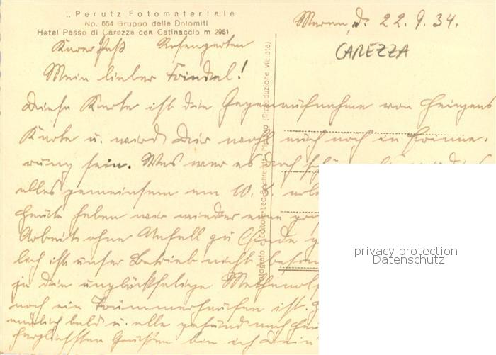 73769718 Carezza Catinaccio Trentino IT Hotel Passo di Carezza con Catinaccio Dolomiti postalisch nicht gelaufen Erhaltung siehe scans [FriedD77] Frie Katcode 11240