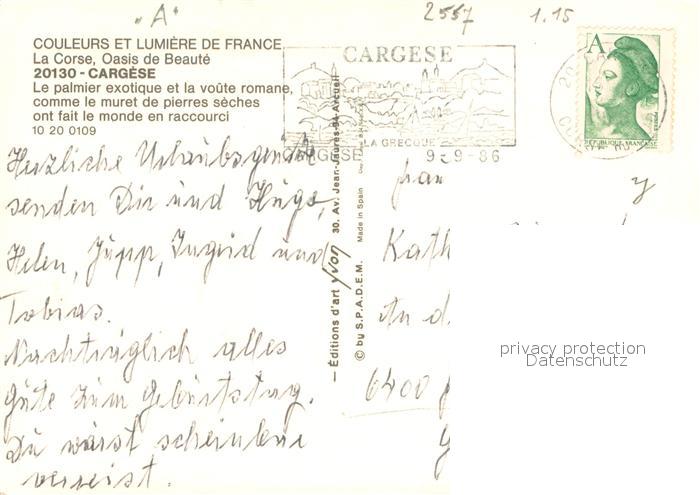 13718426 Cargese Palmier exotique et la voûte romane postalisch gelaufen Erhaltung siehe scans [FriedD77] carte postale Frie Katcode 1117002A12A065