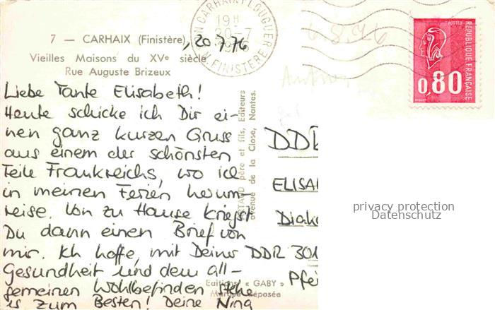 34142933 carte postale Carhaix-Plouguer Chateaulin 29 Finistere Vieilles Maisons du XVe siècle Rue Auguste Brizeux postalisch gelaufen Erhaltung siehe scans [FriedD77] KatCode: 11170029229024