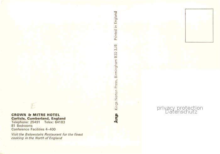 12719945 Carlisle Crown Mitre Hotel postalisch nicht gelaufen Erhaltung siehe scans [NatalD47] KatCode: 11570UKD1D12UD