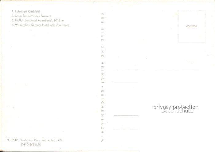 72324540 Carlsfeld Erzgebirge Auersberg Sosatalsperre Berghotel Auersberg Wildenthal postalisch nicht gelaufen Erhaltung siehe scans KatCode: 11110014191120