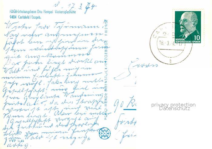 72681478 alte Postkarte Carlsfeld Erzgebirge Erholungsheim Otto Hempel Weiterglashuette im Schnee postalisch gelaufen Erhaltung siehe scans [LiesaD40] KatCode: 11110014191120
