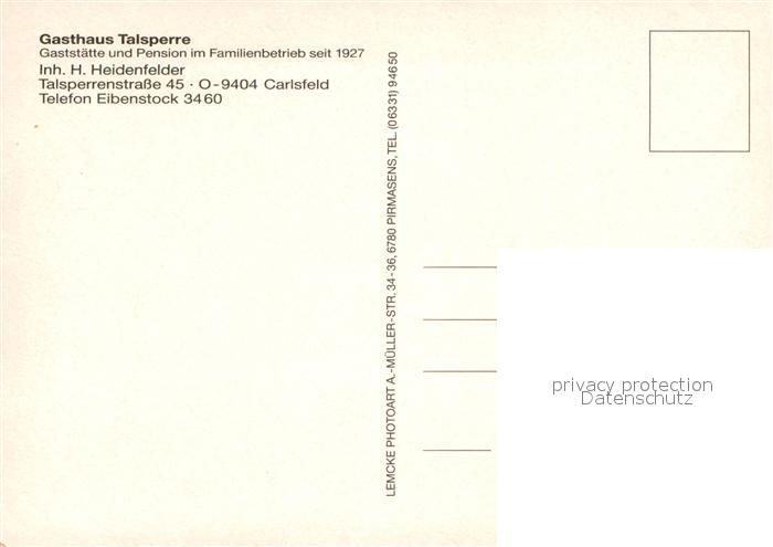 72929741 Carlsfeld Erzgebirge Gasthaus Pension Talsperre postalisch nicht gelaufen Erhaltung siehe scans [KathaD81] KatCode: 11110014191120