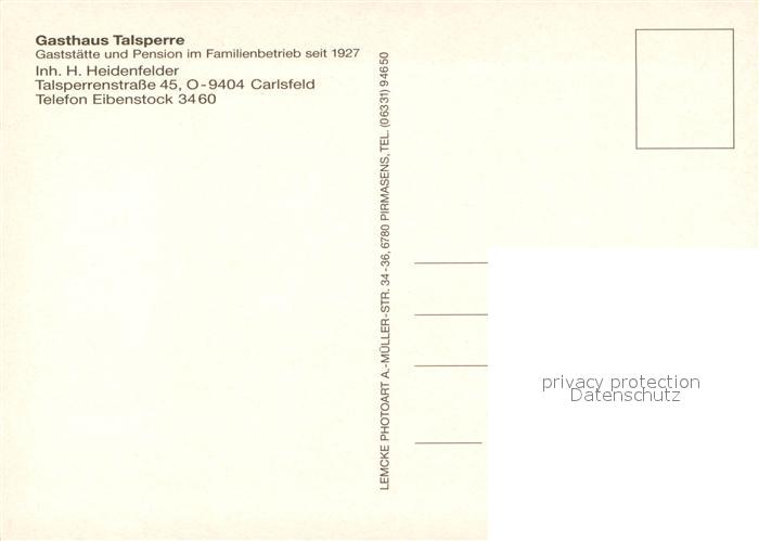 73209424 Carlsfeld Erzgebirge Gasthaus Pension Talsperre postalisch nicht gelaufen Erhaltung siehe scans [FriedD77] KatCode: 11110014191120