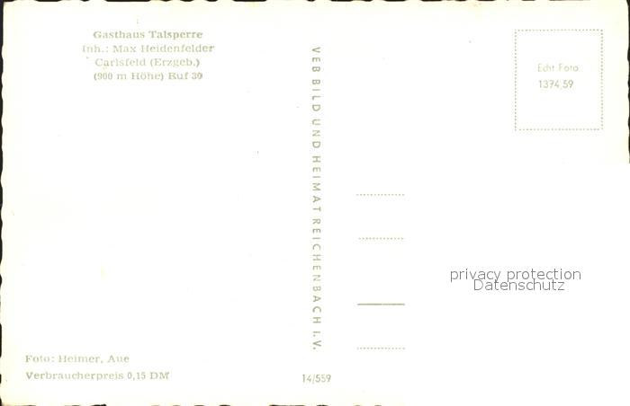 72365075 Carlsfeld Erzgebirge Gasthaus Talsperre postalisch nicht gelaufen Erhaltung siehe scans KatCode: 11110014191120