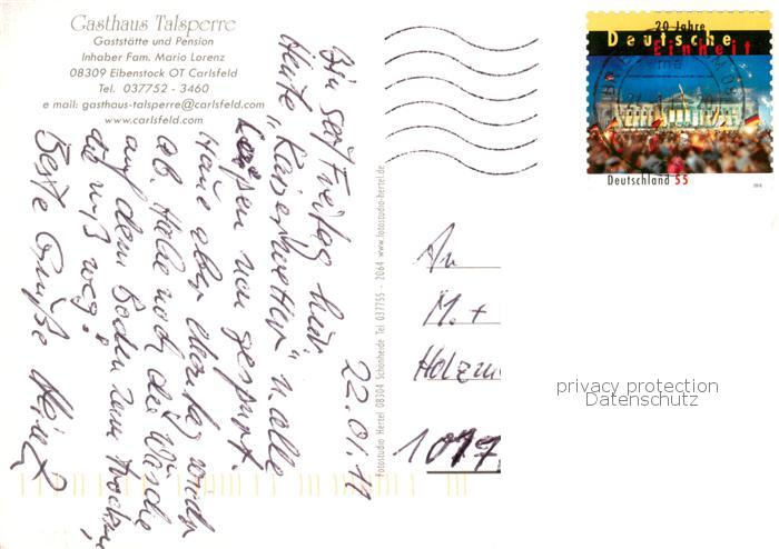 73857450 alte Postkarte Carlsfeld Erzgebirge Gasthaus Talsperre Gaststube Langlauf Loipe Schlepplift postalisch gelaufen Erhaltung siehe scans [WerneD78] KatCode: 11110014191120