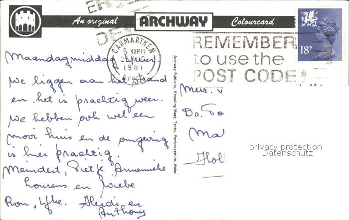 old postcard Carmarthen Town Carmarthenshire Pendine Sands postalisch gelaufen Erhaltung siehe scans