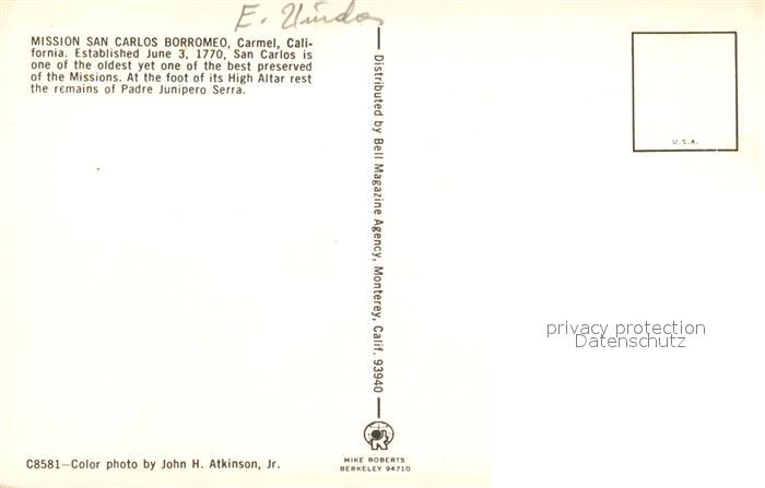 73057233 Carmel California Mission San Carlos Borromeo postalisch nicht gelaufen Erhaltung siehe scans [WerneD78] KatCode: 14140050000000