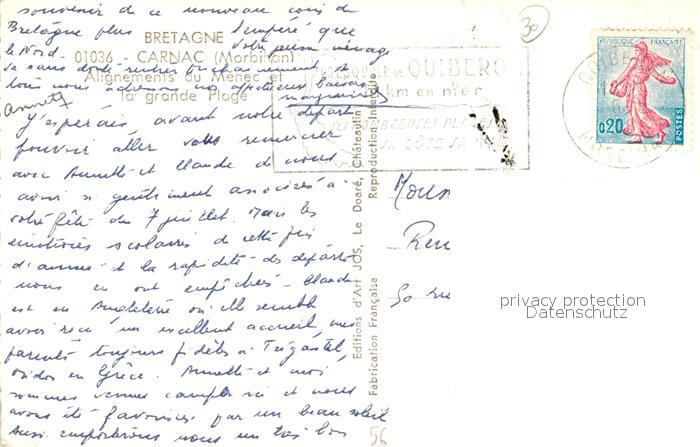 13505787 carte postale Carnac Morbihan Alignements du Ménec Grande Plage postalisch gelaufen Erhaltung siehe scans [FriedD77] KatCode: 11170056156034