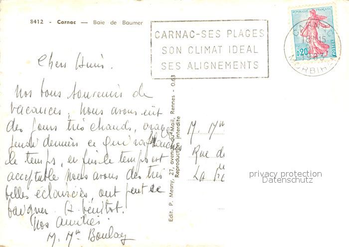 13586685 Carnac Morbihan Baie de Baumer postalisch gelaufen Erhaltung siehe scans [WerneD78] carte postale Wern Katcode 11170056156034