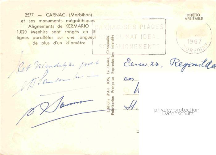 12857095 carte postale Carnac Morbihan et ses monuments megalithiques Aligenements de Kermario postalisch gelaufen Erhaltung siehe scans [FriedD77] KatCode: 11170056156034