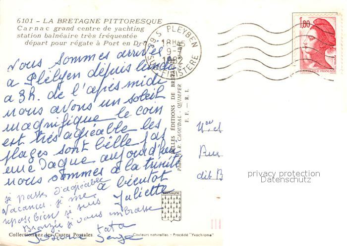 13580803 carte postale Carnac Morbihan Grand Centre de yachting Station balnéaire Départ pour régate a Port en Drô postalisch gelaufen Erhaltung siehe scans [FriedD77] KatCode: 11170056156034